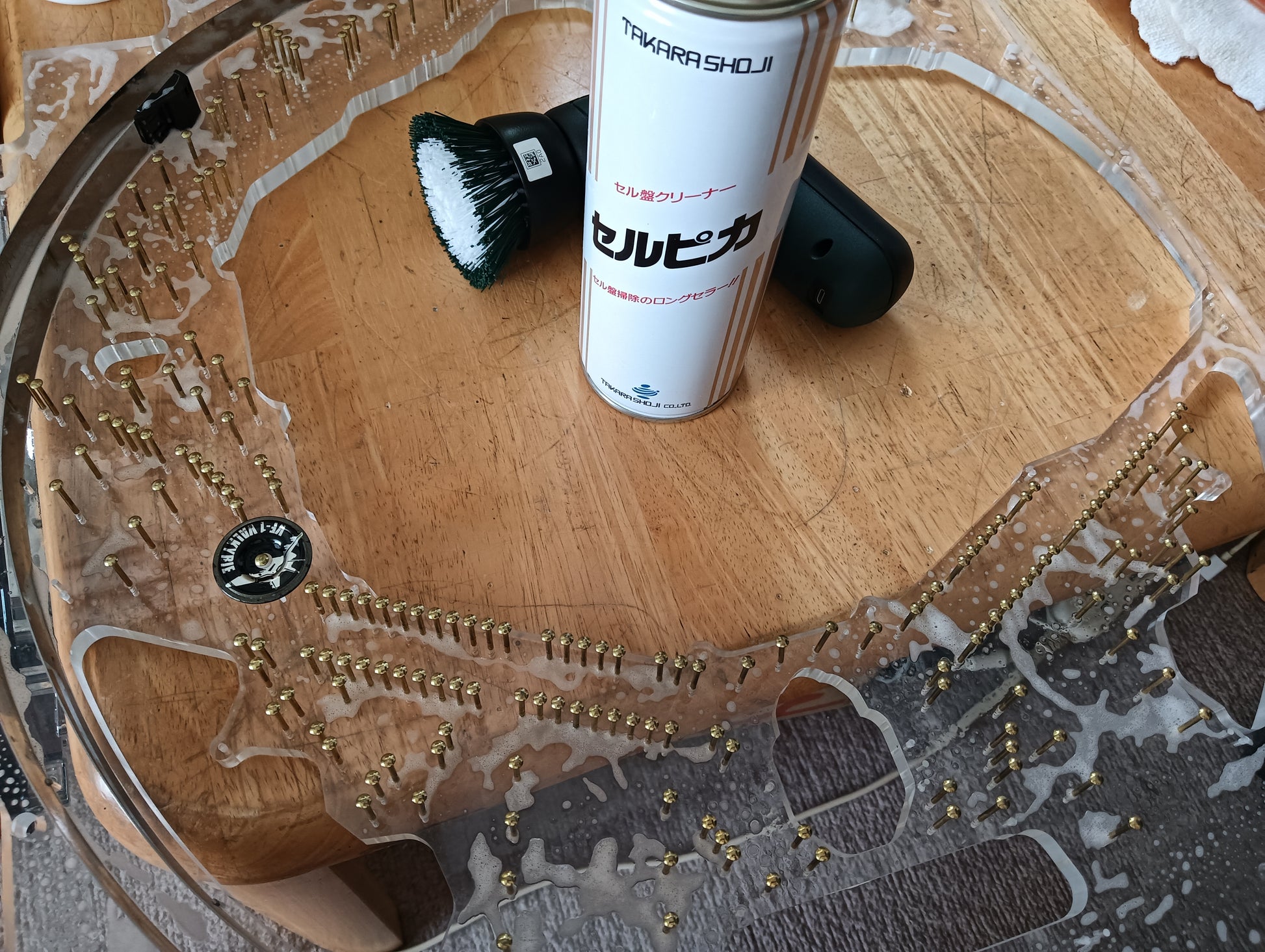 主に前面の見える範囲を分解し綺麗にします、ブラシでセルを洗浄しますので多少釘も綺麗になります。